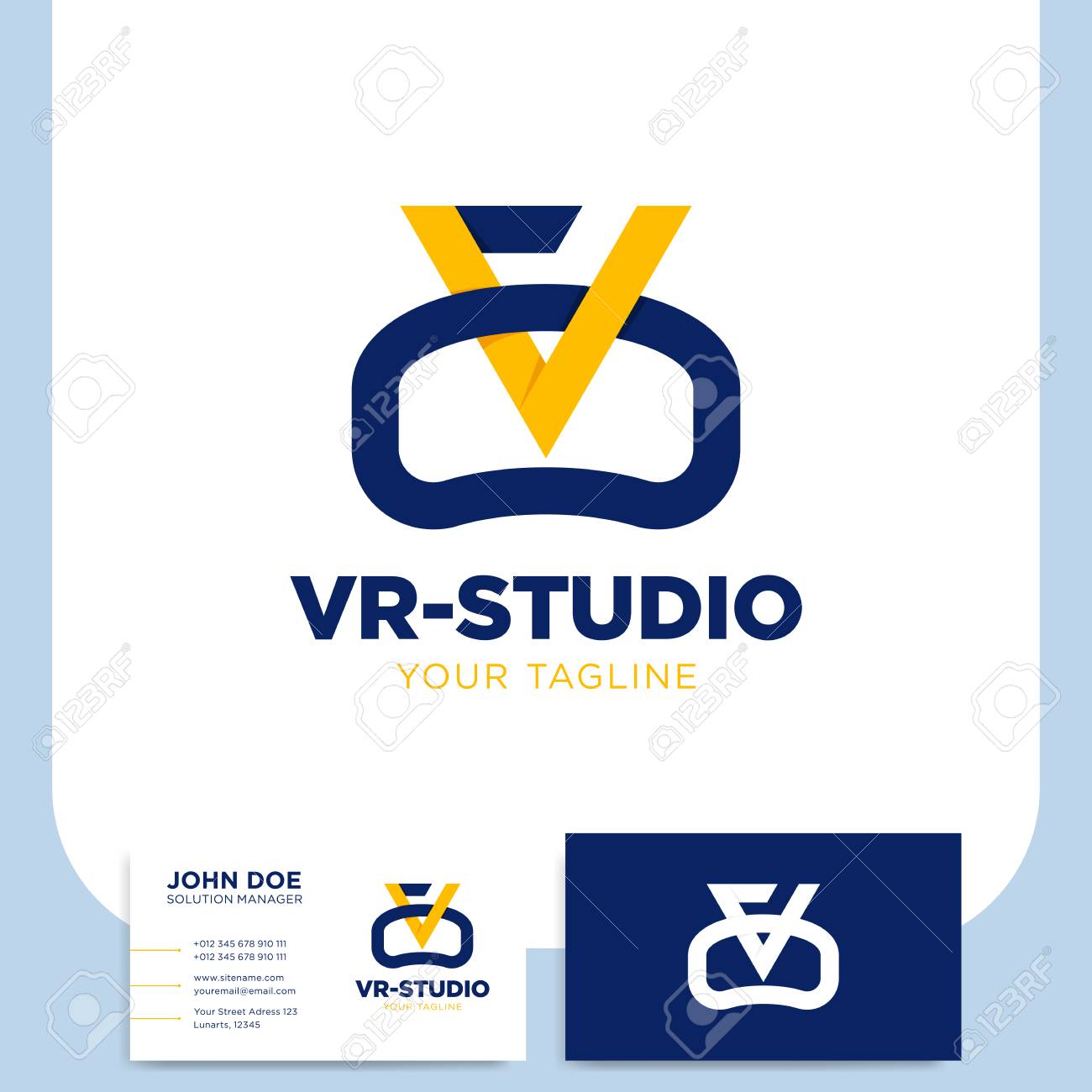 Vettoriale Linea Colorata E Biglietto Da Visita Del Logotipo Di Realta Virtuale Del Modello Di Progettazione Di Logo Del Monogramma Di Vr Image 94924896