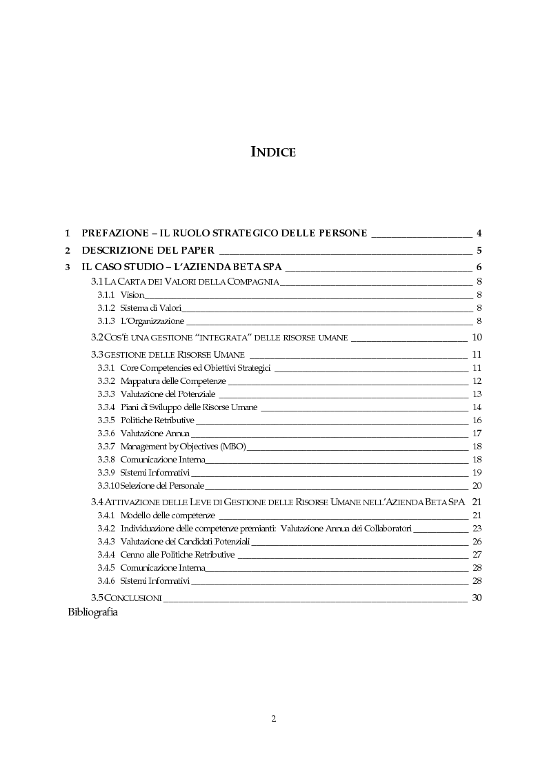 Un Modello Di Gestione Integrata Delle Risorse Umane Testimonianza Di Un Caso Aziendale Indice
