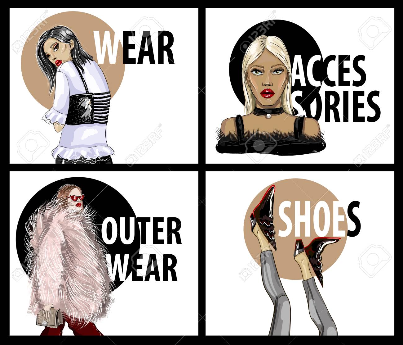 Vettoriale Banner Per Negozio Online O Pubblicita Con Modello Di Ragazze In Abiti Alla Moda Scarpe E Accessori Image 97839835
