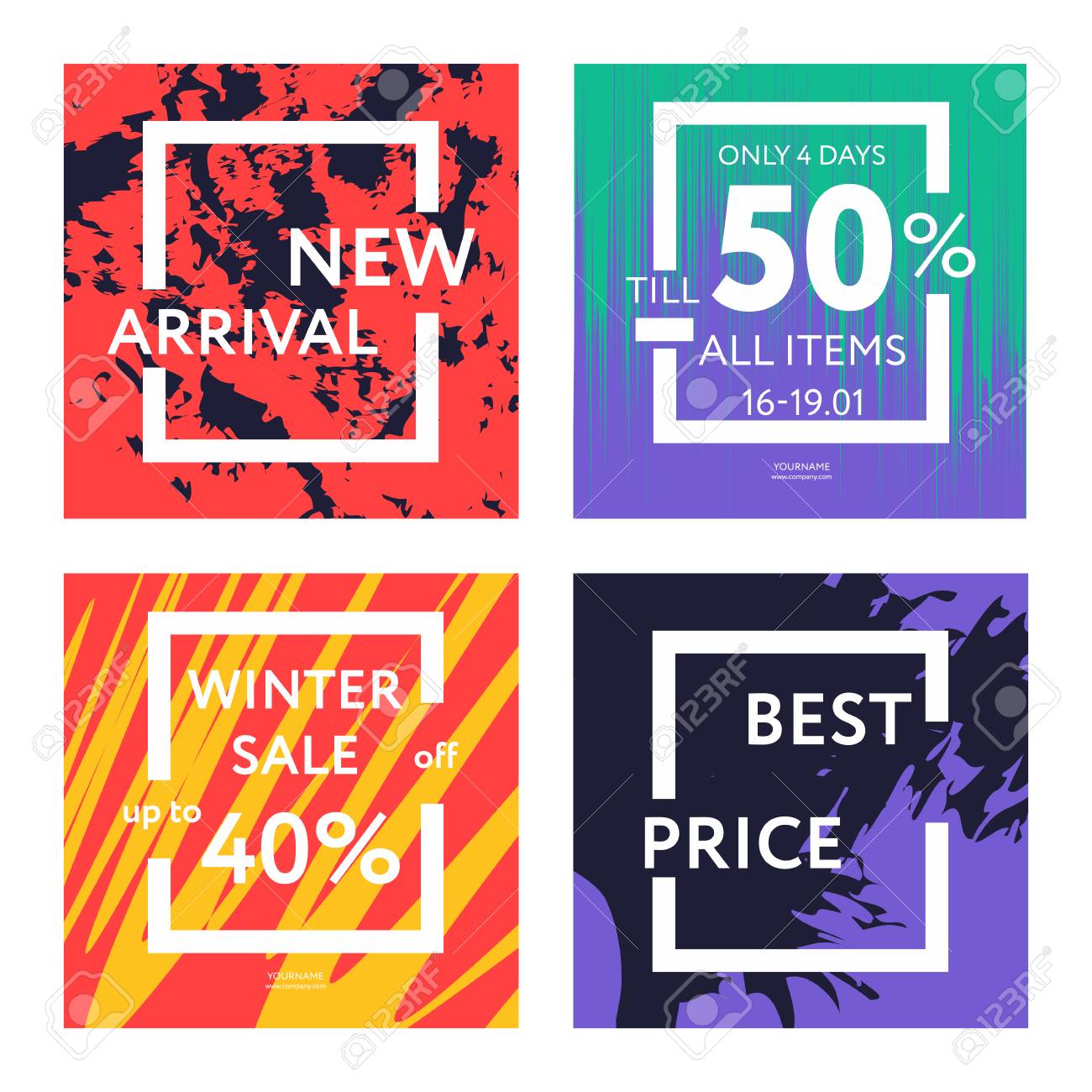 Vettoriale Modelli Di Banner Web Di Vendita Per Pubblicita Offerte Speciali Colori Liquidi In Diverse Forme Nuovi Arrivi Nuova Collezione Concetto Di Vendita Per La Promozione Di Negozi Online Set Di