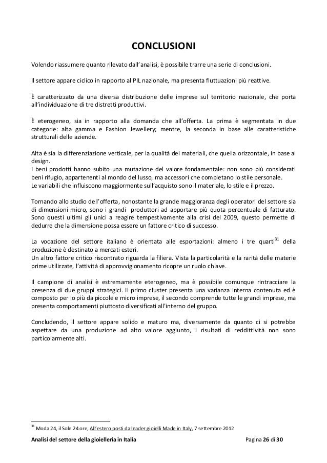 Analisi Settore Gioielleria