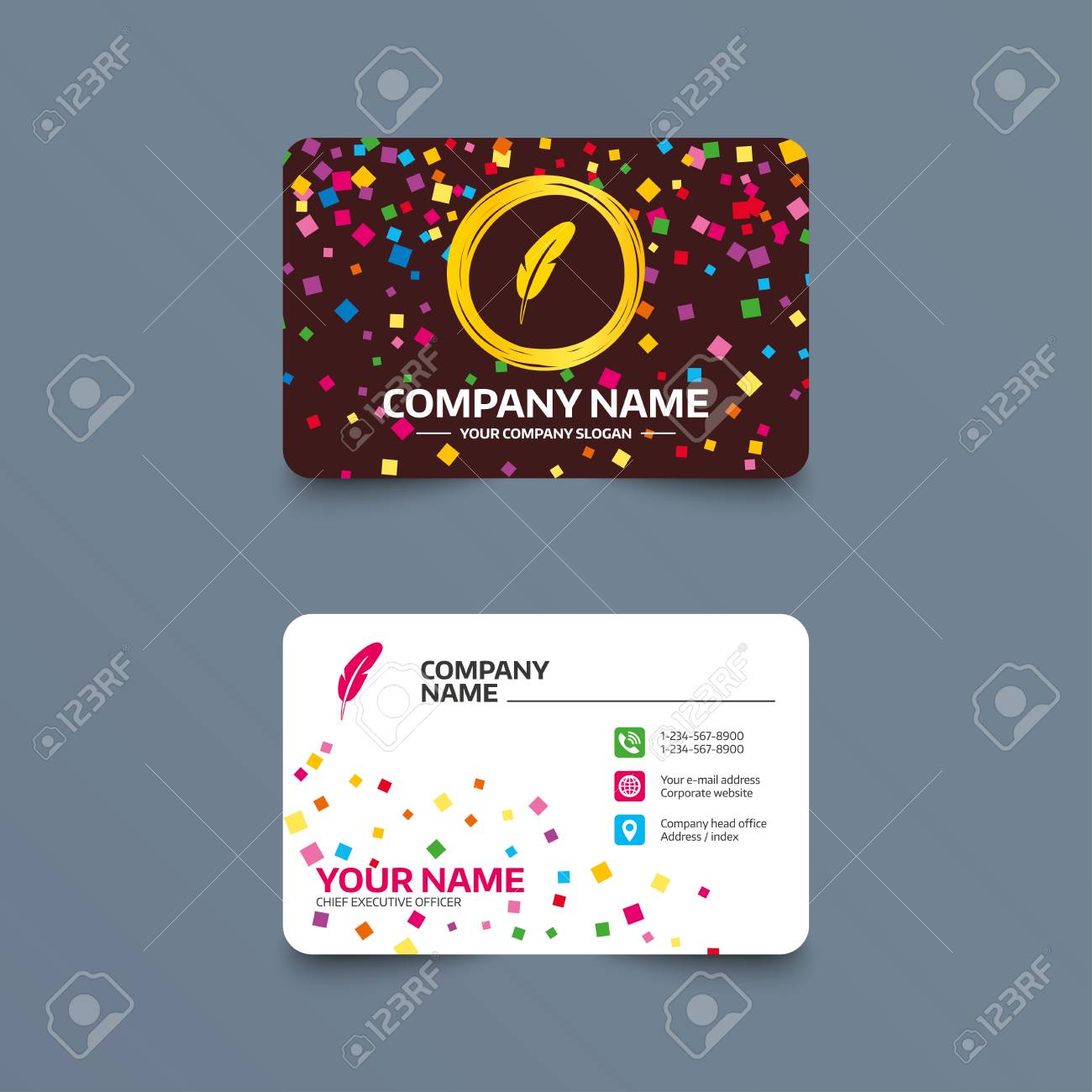 Vettoriale Modello Di Biglietto Da Visita Con Pezzi Di Coriandoli Icona Del Segno Di Piuma Simbolo Penna Retro Simbolo Di Peso Leggero Telefono Web E Icone Di Posizione Biglietto Da Visita