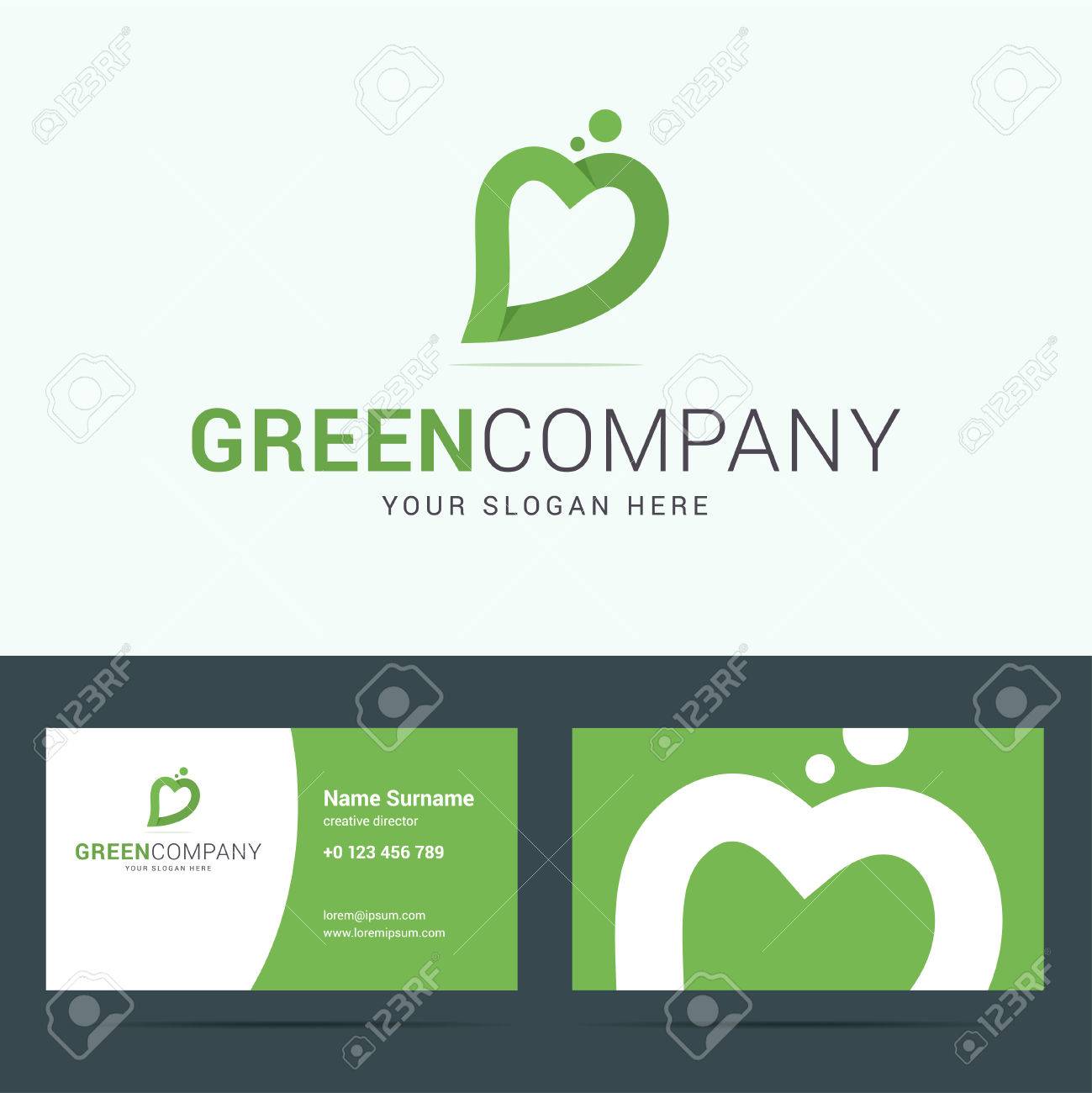 Vettoriale Logo E Biglietto Da Visita Modello Per Ecologica Societa Natura Logo Con Il Foglio Ed Il Segno Del Cuore Nei Colori Verde Eco Logo Aziendale E Biglietto Da Visita Segno
