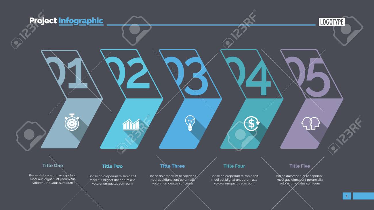 Vettoriale Modello Di Diapositiva Del Diagramma Di Processo In Cinque Fasi Dati Aziendali Flusso Di Lavoro Aziendale Design Concept Creativo Per Infografica Presentazione Relazione Puo Essere Utilizzato Per Argomenti Come Gestione