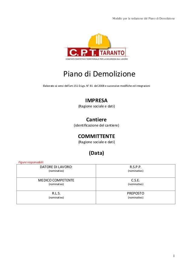 155 2015 Modello Piano Delle Demolizioni