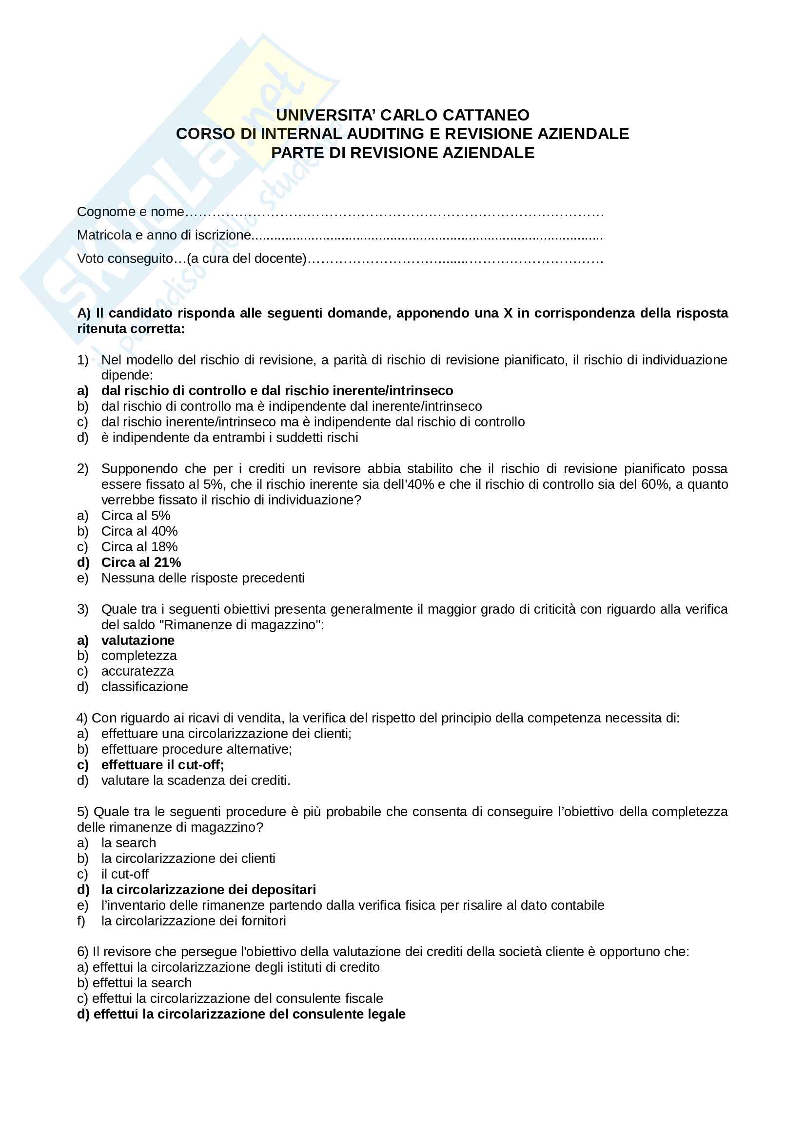 Esame Di Revisione Aziendale Interna Ed Esterna Docsity