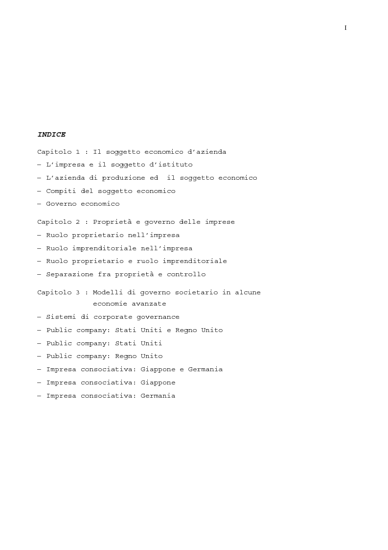La Revisione Aziendale E La Corporate Governance Indice Pagina 1 Di 5