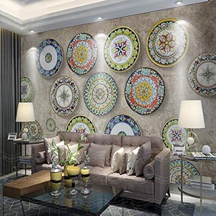 Servizi Di Piatti Piatti Stoviglie In Ceramica Piatti Bistecca Carta Da Parati Stile Europeo Piatto Etnico Bohemien Classico Modello Ristorante Ristorante Parete Tv Carta Da Parati Importato Non Tessuto Cucitura Quadrata