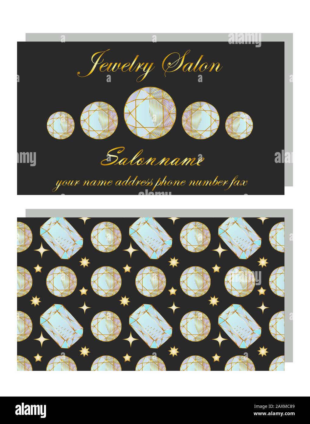 Identita Del Marchio Modello Di Biglietto Da Visita Con Lato Anteriore Con Logo Diamante Dorato Cristallo Testo E Lato Posteriore Con Motivo Con Pietre Preziose Immagine E Vettoriale Alamy