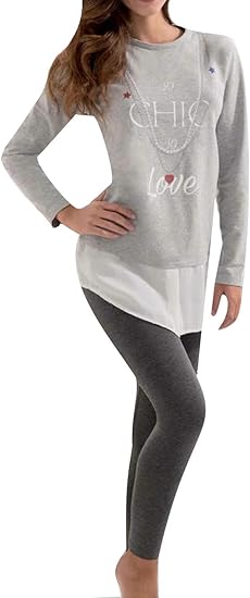 Lady Bella Pj1001 Pigiama Donna Autunno Inverno In Jersey Elastico Modello Due Pezzi Con Maglia Lunga A Scollo Tondo E Manica Lunga Grigio Antracite Large Amazon It Abbigliamento