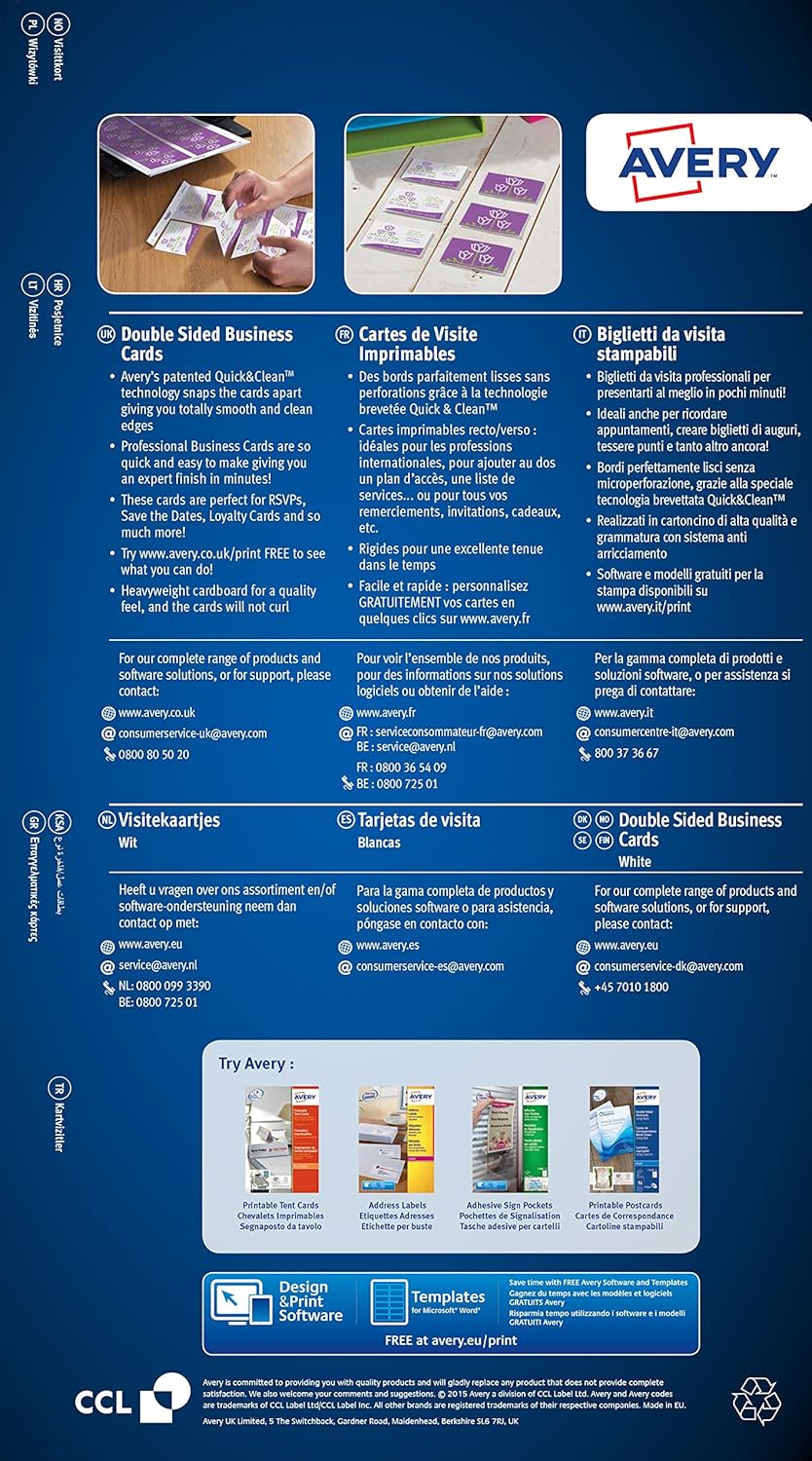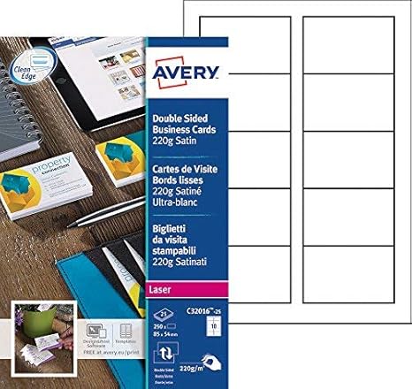 Avery Italia C32016 25 Biglietto Da Visita Stampabile Fronte Retro 10 Biglietti Per Foglio Confezione Da 25 Pezzi Bianco Amazon It Cancelleria E Prodotti Per Ufficio